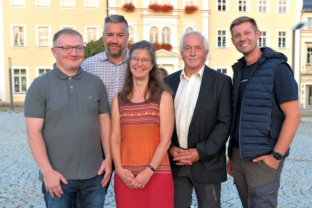 Erste Reihe von links: Carmen Harnisch (Hauptamtsleiterin), Reiner Hentschel (Bürgermeister), Carola Kern (Kämmerin), David Kurenz, Andreas Rothe.