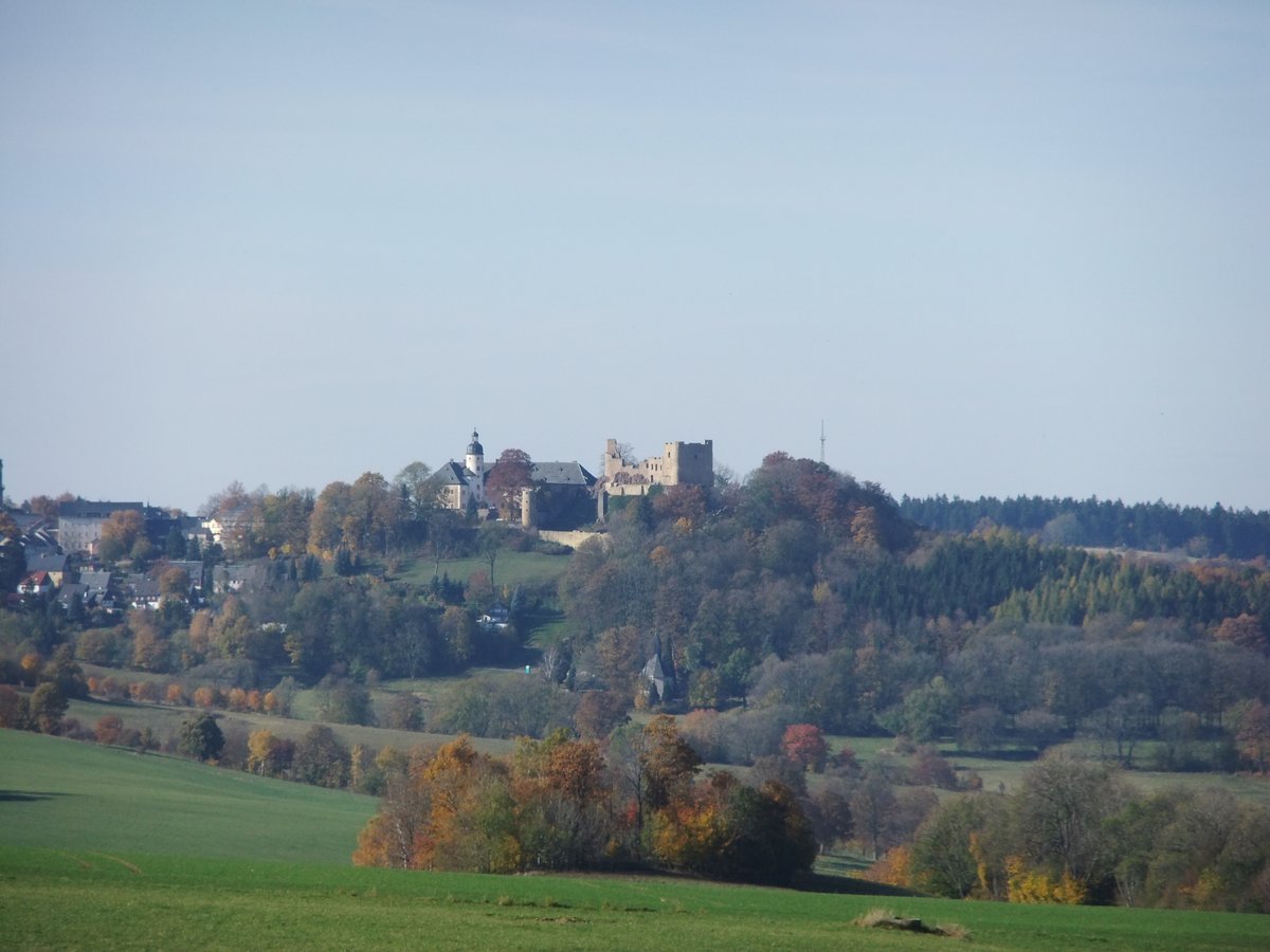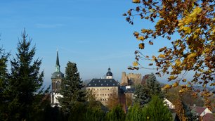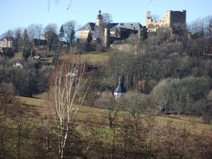Den Wanderer erwarten viele schöne Ausblicke auf den Burgberg, das Freiberger Land und das Städtchen Frauenstein.