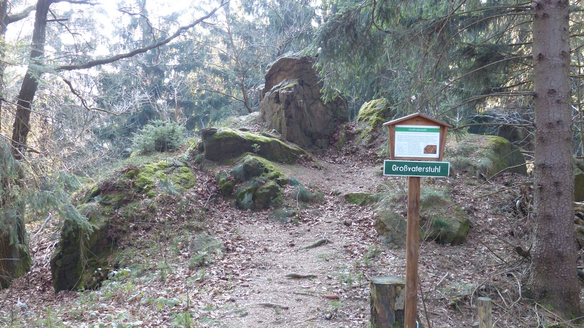 Sie können mit einem Smartphone und der entsprechenden APP ohne Wegweiser im naturbelassenen Teil sich zum naturschönen Punkt der Felsengruppe "Weißer Stein" vorarbeiten.