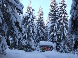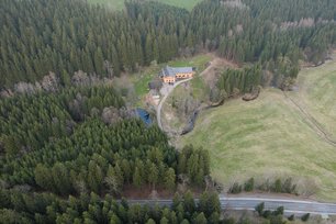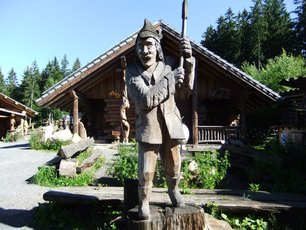 Sie führt zum historischen Eisenhammer und zum einmalgen Ausstellungsgelände für Schnitzereien mittels Motorkettensäge.