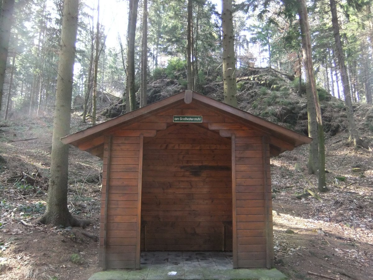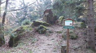 Sie können mit einem Smartphone und der entsprechenden APP ohne Wegweiser im naturbelassenen Teil sich zum naturschönen Punkt der Felsengruppe "Weißer Stein" vorarbeiten.