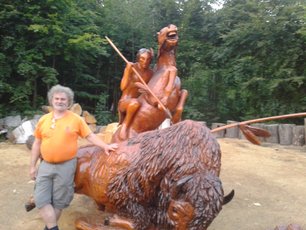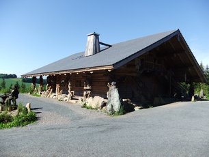Sie führt zum historischen Eisenhammer und zum einmalgen Ausstellungsgelände für Schnitzereien mittels Motorkettensäge.