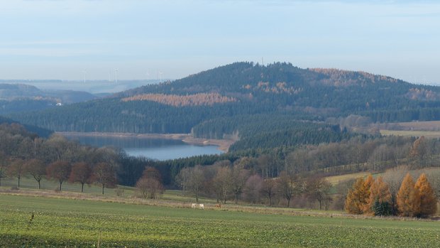 Den Wanderer erwarten herrliche Ausblicke auf den Burgberg und die Talsperre Lichtenberg.