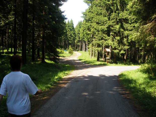 links auf Steinbruchweg "gelber Strich" - kleine Kreuzung -